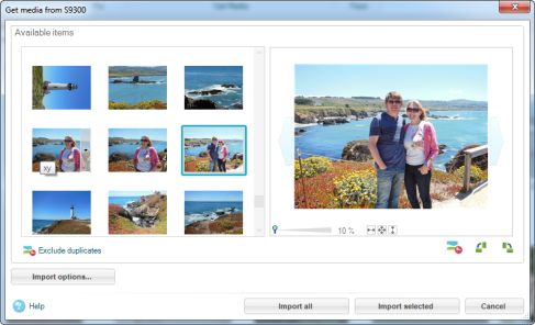Tip: Select several items in a row by clicking the first item, pressing the SHIFT key on your keyboard, and clicking the last item in the sequence. You can exclude duplicates, exclude the previewed image, and rotate the images using the buttons under the preview.