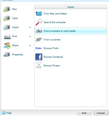 2. In the resulting pop-up, choose Import > From a camera or card reader.
