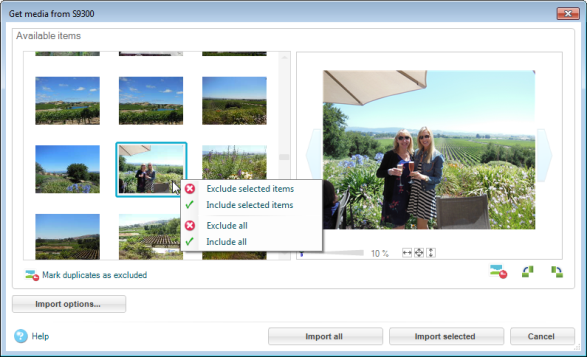 You can also exclude or include specific items by using the drop-down arrow or right-clicking on each thumbnail.